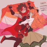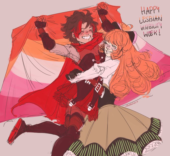 happy #lesbianvisibilityweek !!! ft. my two faves :] #RWBY #RWBYfanart here to show solidarity to all my friends and moots who vibe with this flag 🤍 (ruby and penny are headcanoned lesbian)