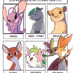 2nd round done! These are my top fav and a few suggestions! Thanks for suggesting some guys. #SixFanarts #tlk #thelionking #LiloAndStitch #foxandthehound #pokemon #fanart #furryart #bna #BrandNewAnimal #delphox #angel #experiment624 #characterdesign #art #anthro #fox