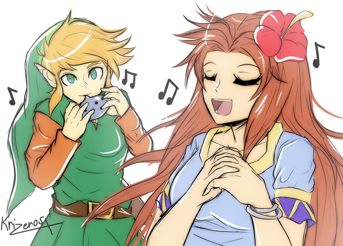 Artober day 8: Music Marin and Link duetting ballad of the wind fish is still one of my favourite Zelda memories #Artober #FxArtober #LegendofZelda #LinksAwakening