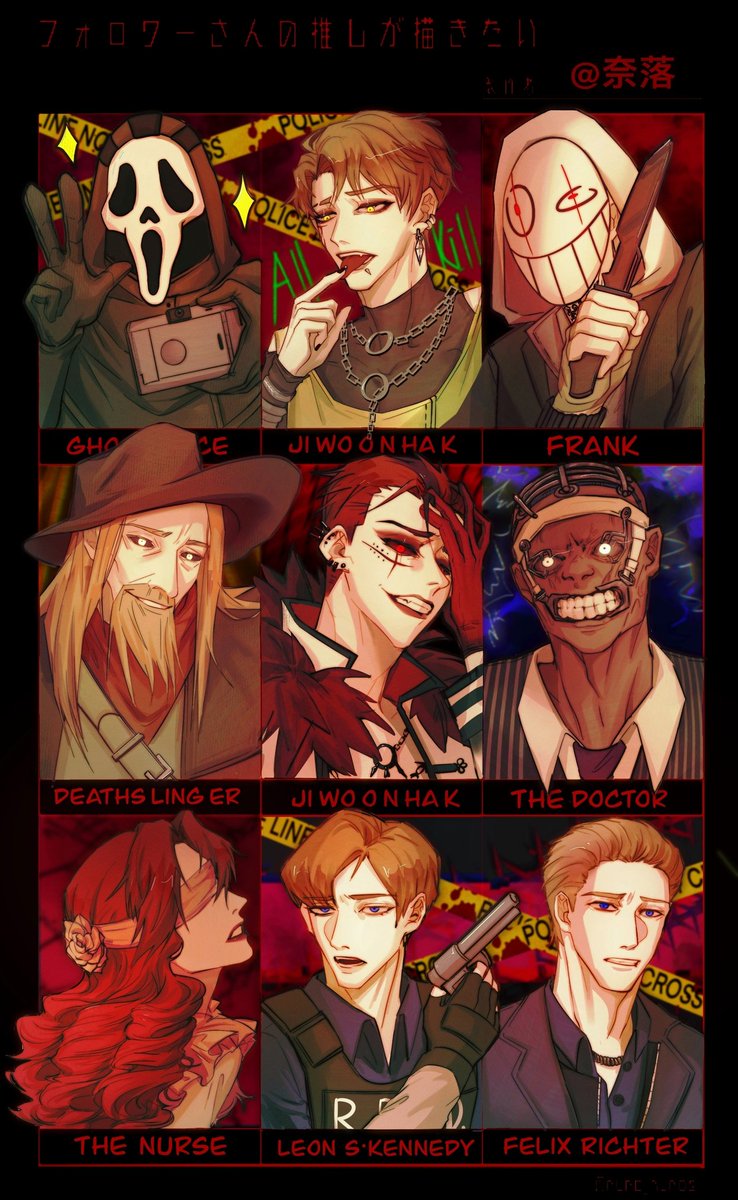 我爱的角色们❤️🤤🤤(并不是全部) #フォロワーさんの推しが描きたい #학지운 #dbd #deadbydaylight #thetrickster #dbdアート #JiWoonHak #dbdfanart #ghostface #lion