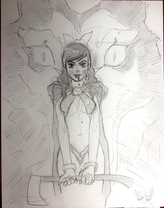 At the dr office, #vampirella #littleredridinghood #dailydoodle, $100 Might do a fancier version of this sometime (sorry for the weird waiting room lighting)