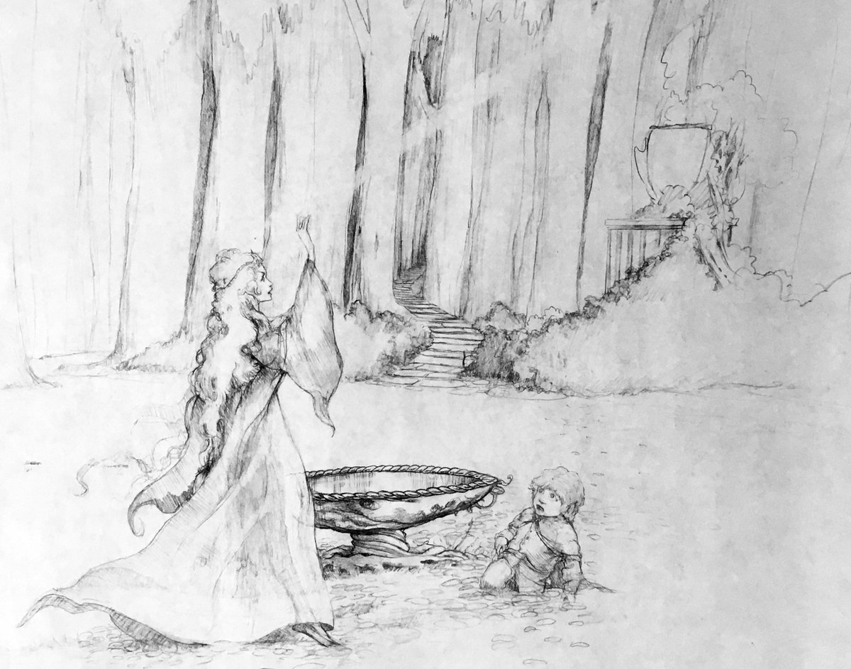 Galadriel and Frodo in Lothlorien. Original pencil #conceptart for #LordOfTheRings (1978) by Joseph Zucker. Available for the first time from the Bakshi archives - bit.ly/LOTR_Collector