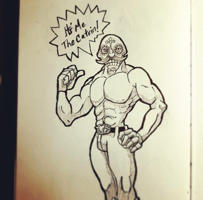 Day 16 of #kayfabetober is #wrestling! Probably my favorite style has to be #luchalibre as the camp and bombasity is on full display! #artistsoninstagram #art #characterart #charicature #poconopeak #inktober #penandink @CartoonKayfabe #wwe #drawsmall
