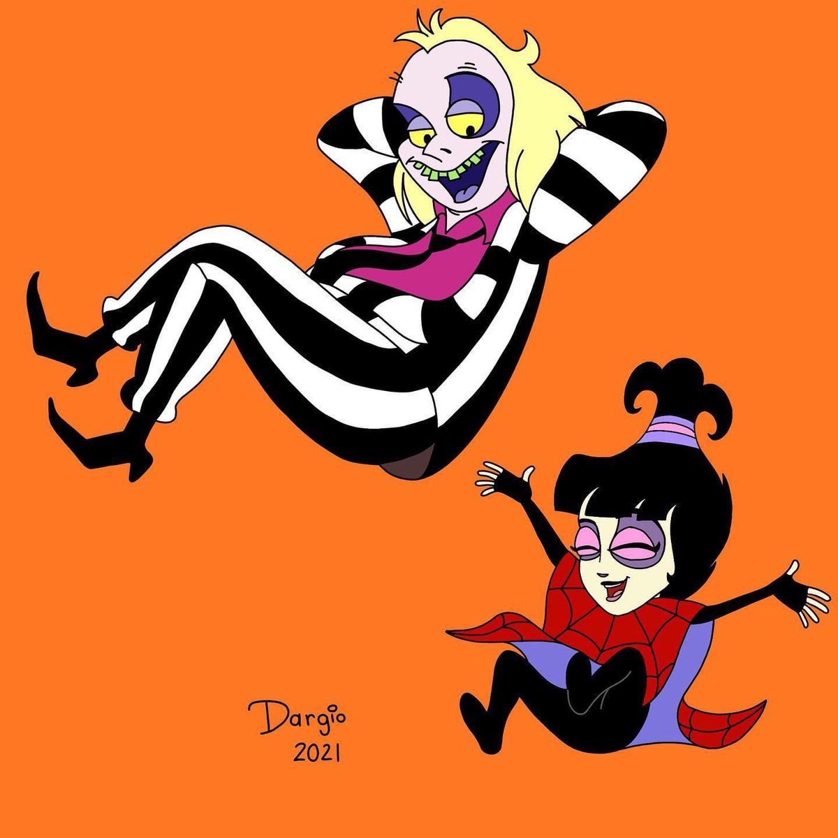 Lydia and Beetlejuice hanging out in a colorful void! 🌌✨ I've had this image finished forever now, but chose it for my Premiere and After Effects experiments, thought I'd finally post the drawing... 😅 #beetlejuiceanimatedseries #beetlejuice #lydiadeetz #fanart