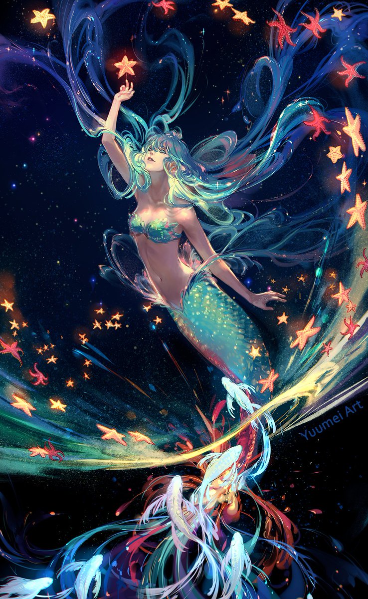 Finally did something for #mermay A friend on Discord suggested a mermaid swimming through a galaxy of sea stars and I loved the idea so much I had to draw it ⭐ ✨ #mermay2023 #mermaid