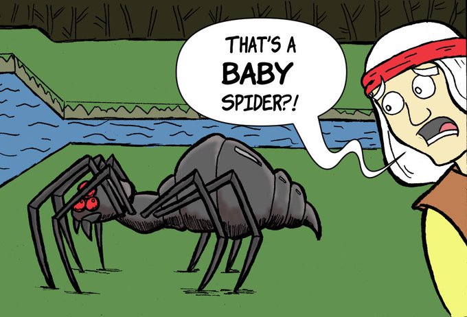 #Inktober #inktober2022day2 #inktober22 #scurry “Smaller and weaker than his larger kin, this baby spider is deadly nonetheless. Its soft belly is engorged with its last meal.” #comicstrip #art by @jessekiefer meridian59.com #gaming #roleplaying #rpg #mmorpg