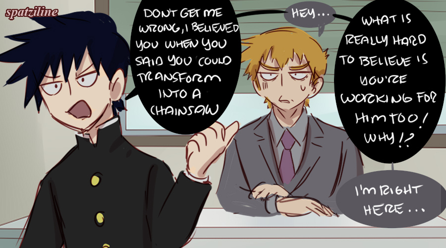 More of the Chainsaw Man x mp100 AU where Reigen finds Denji instead of Makima #mp100 #mobpsycho #chainsawman