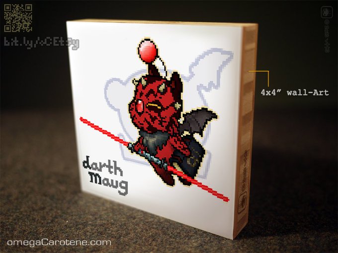 || Beware the menace of #darthMaug! || ⭕️ etsy.me/32elDls • bit.ly/oCEtsy ⭕️ ⚔️ how will U equip yer #moogle? 🤔 ‘Tis my 1st #mashUp variant of my #pixelArt #Mog (wallArt), #kupo! :3 FF #etsySALE is ongoing; DM me! #oCmoogle #darthMaul #moogleReadyforBattle⚔️