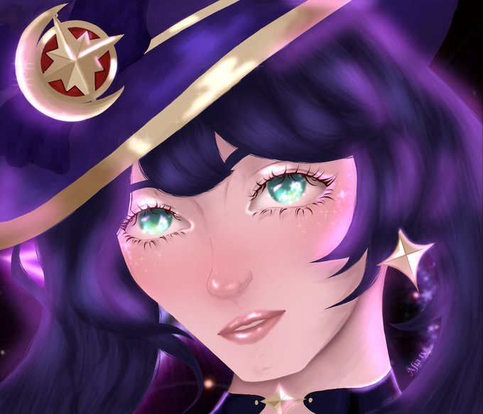 вернулась в тв*ттер, чтобы показать свою моночку и собрать три фава👩🏼❤️💋👩🏽 #mona #genshinimpactfanart