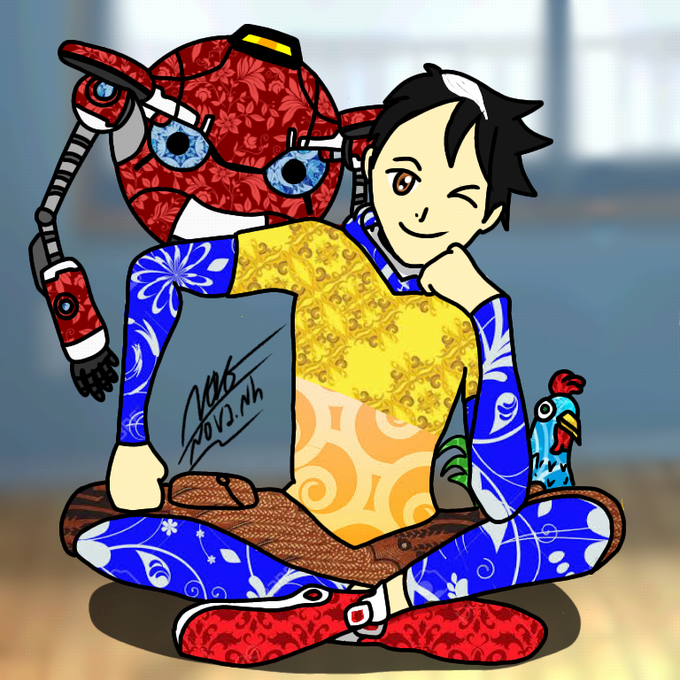 Day 17 : Batik Mechamato batik indonesia version With chicken blue #Mechamato #Mechatober #Inktober #Monsta