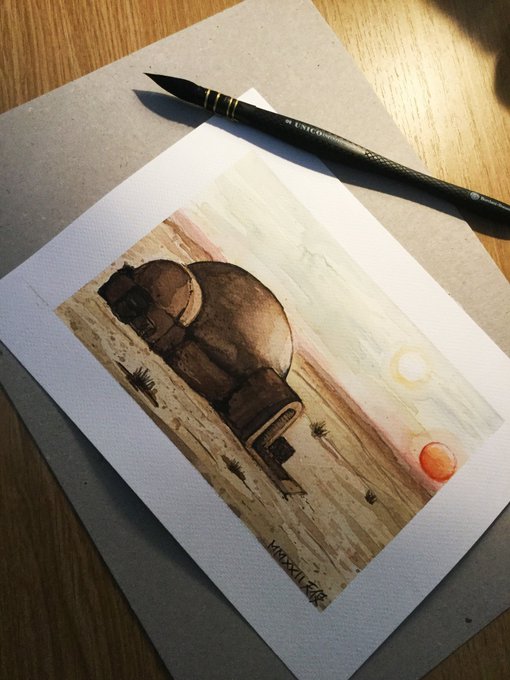 Per chi ama abitazioni isolate in luoghi esotici... #starwars #tatooine #mandalorian #diyflyingtiger #acquarello #muji #borcianibonazzi #copic #winsornewton #watercolor #sketch #sketchbook #schizzo #水彩画 #イラスト #illustration