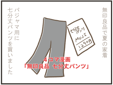 【4コマ漫画】 「無印良品 七分丈パンツ」 無印の七分丈パンツ愛をブログにも 熱く語っています。 ブログkimamas.com/post-6705/ #無印良品 #MUJI #漫画が読めるハッシュタグ #4コマ漫画 #漫画 #日常漫画 #イラスト #illustration #comic