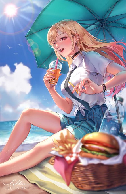 Beach Day!! 🍔🍟🧋 i love marin kitagawa so much, managed to finished this print in time for #AX2022ArtistAlley #MyDressUpDarling