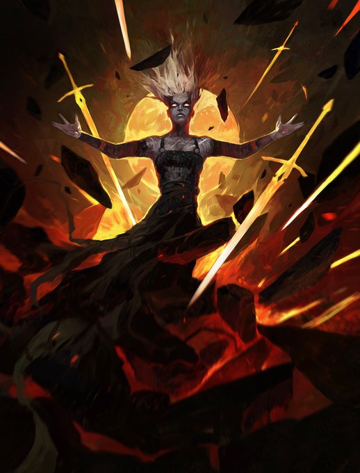 Urn of Godfire. Digital Painting for the new #MagicTheGathering release March of the Machine. This illustration was a challenge because I wanted to make a piece of pottery look as dynamic as possible but also give it some weight and a clear silhouette. #WOTCstaff #digitalart