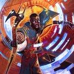 Teferi’s Talent for the new #magicthegathering #mtg March of the Machine Commander Set. This one was super fun! Painting such an iconic character and combining the Phyrexian symbols and Teferi’s time magic with the shape language of his home plane. AD: Zack Stella