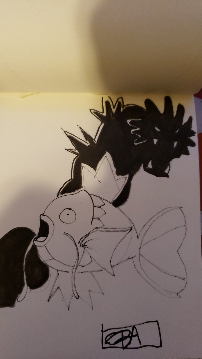 #inktober2021 #inktober2021day27 im not gonna a lie, im #tired as shit lol, so I decided to just do a #magikarp and #gyarados #drawing from #pokemon, now to lay my ass down and get some #sleep lol #sketches #sketchbook #Nintendo