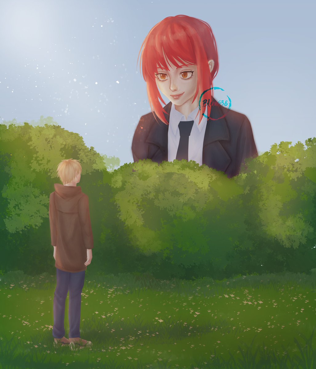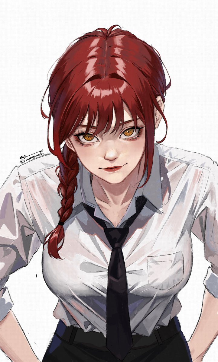 Makima in the office vs. Makima in the gym #makima #chainsawman #chainsawmanfanart #csm #digitalart #ArtistOnTwitter