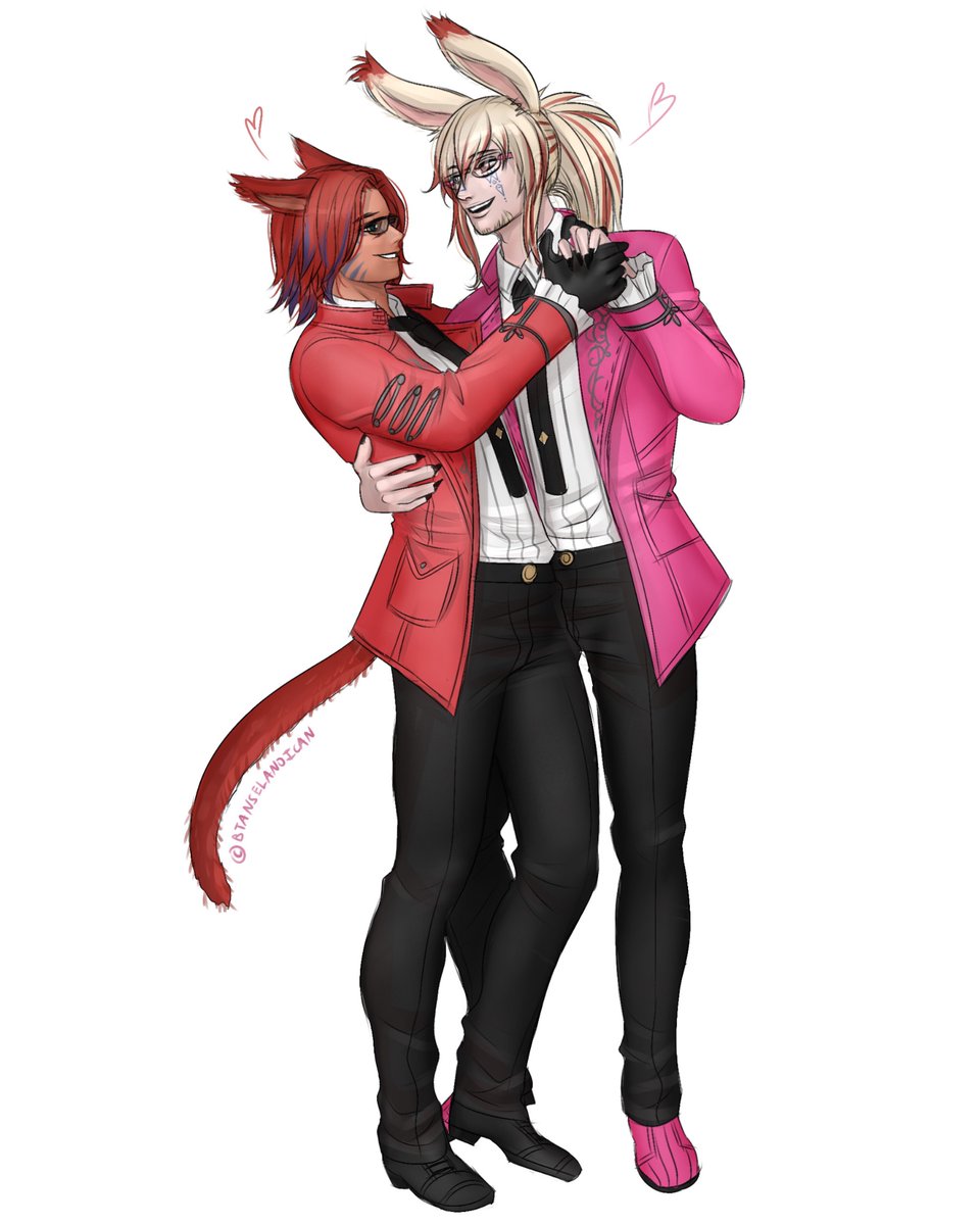 Look at them dancing! Thank you so much @btanselanoican for this adorable and lovely piece! Now I’m going to go stare because they look absolutely smitten with each other. 💗 #FFXIVART #miqote #maleviera