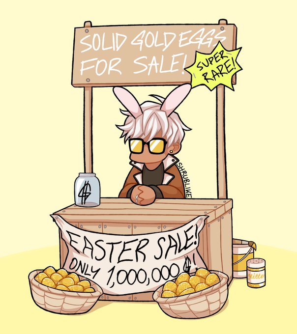 this whole egg decorating malarkey ain't too bad of an tradition huh ☆ ☆ ☆ #happyeaster #obeyme #mammon #obeymemammon