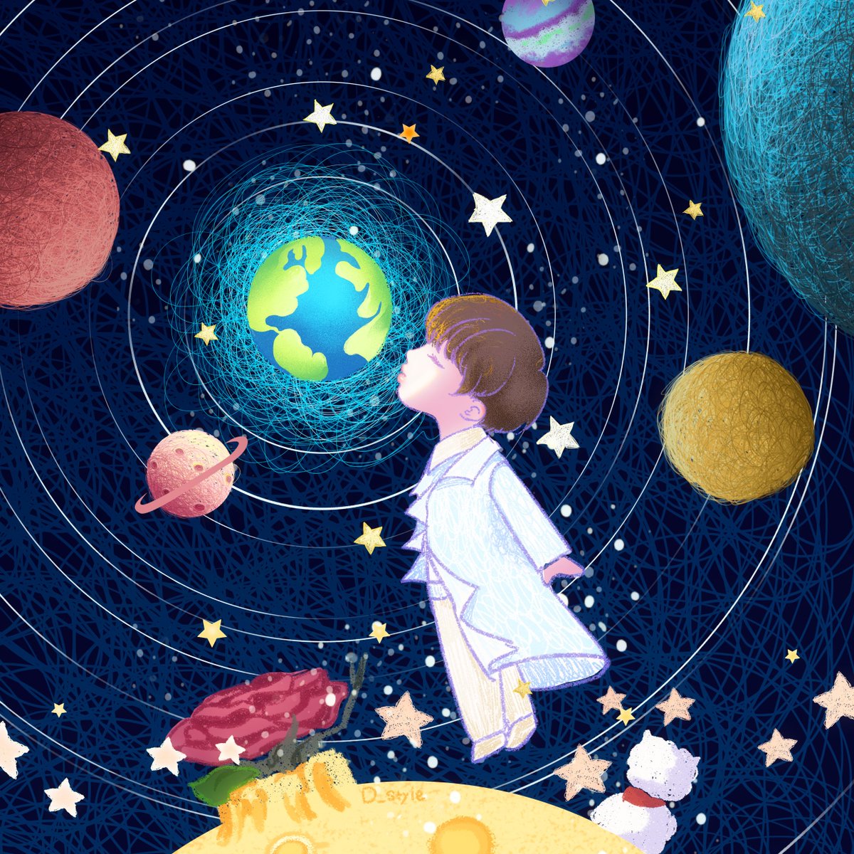 🌔The little prince on the moon🌖 I absolutely loved today’s performance: Jin, this song and the Little Prince in the same performance is more than I could ever ask for💜 #btsfanart #JIN #BTS #MapOfTheSoulOne #TheLittlePrince