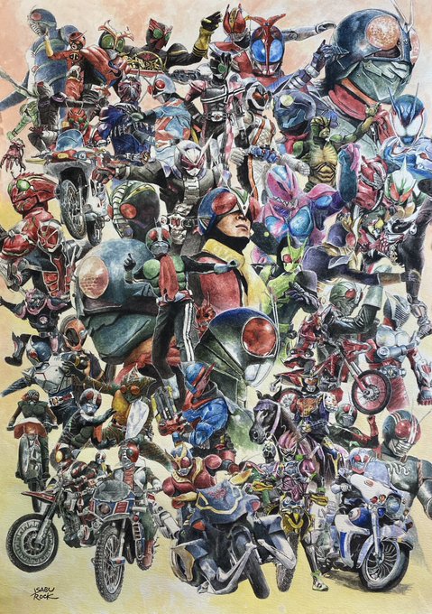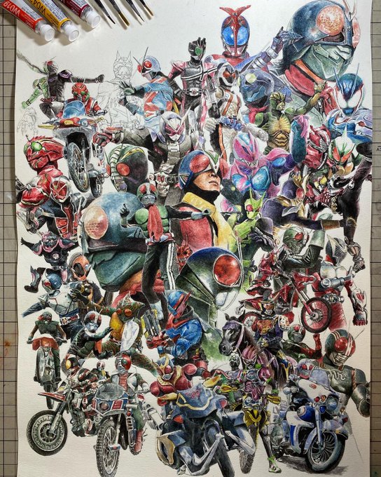 ㊗️仮面ライダー50周年 ついに完成しました。 仮面ライダーを愛する世界中の子供たち、そして大人たちにも届きますように。有難うございました。 #仮面ライダー #kamenrider #maskedrider #透明水彩 #ホルベイン #仮面ライダーリバイス #シン仮面ライダー #drawing #art #illustration