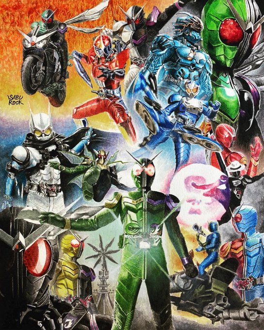 ㊗️仮面ライダー50周年 ついに完成しました。 仮面ライダーを愛する世界中の子供たち、そして大人たちにも届きますように。有難うございました。 #仮面ライダー #kamenrider #maskedrider #透明水彩 #ホルベイン #仮面ライダーリバイス #シン仮面ライダー #drawing #art #illustration
