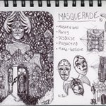✨🖤 INKTOBER ~ Masquerade 🖤✨ Day 5🎭… They played-pretend under the moonlight, in absolute delight at their masquerade to fade away the dreary day. #inktober2021 #ink #art #illustration #sketchbook #ballpointpen #ominous #surreal #spooky #autumn #masquerade #makebelieve