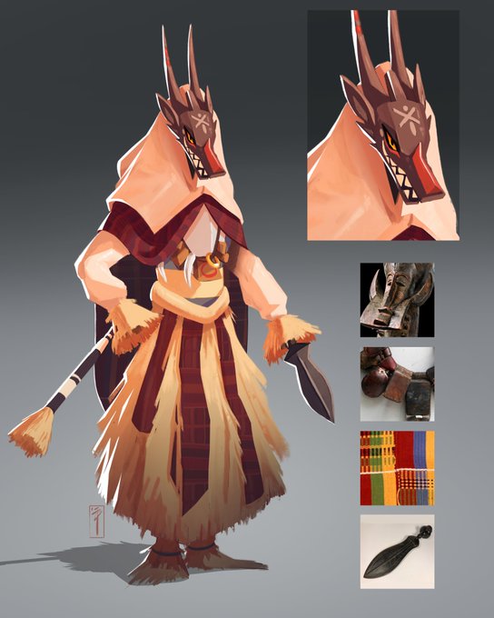 senufo firespitter masquerade warrior #characterdesign #characterart #africanart #masquerade #visdev #イラスト #キャラデザ #創作