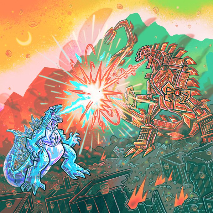 I finally finished this Illustration, but I feel dissatisfied with my Lineart. I hope you like it, please share!! #comic #kaiju #ContinueTheMonsterverse #godzillafanart #ghidorah #MechaKingGhidorah #MechaGodzilla