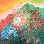 Beam Battle the moment Popped in @GodzillaVsKong @GodzillaMovie @kongskullisland @LegendaryComics @Legendary #godzilla #mothra #mechagodzilla #kingghidorah #rodan #illustraion #design #digitalart #artistsontwitter #cartoon #cartoonist #comic #kaiju #tokusatsu #monsterverse #kong