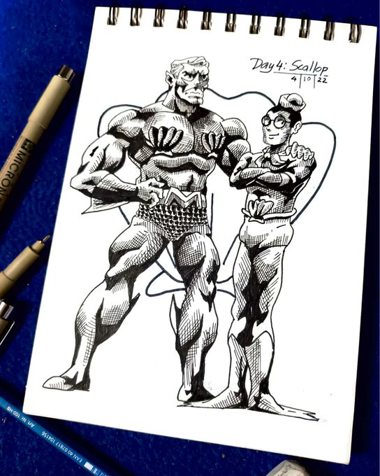 Inktober 2022 day 4, Prompt word "Scallop." Nobody wore them better than Mermaid Man. #inktober2022 #inktoberday4 #spongebob #mermaidman