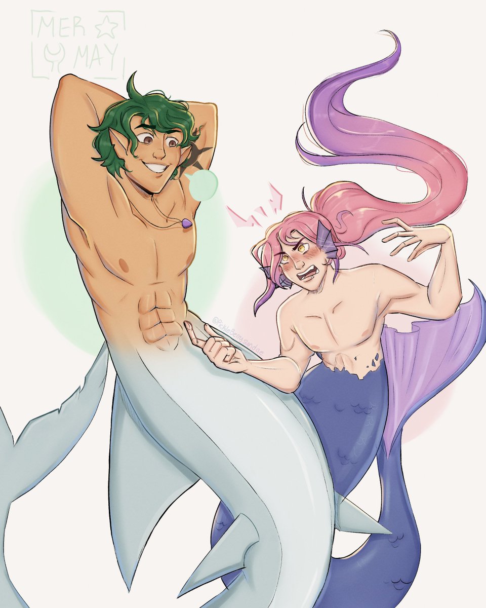 ⛓️🐟🌊 Happy #mermay everyone!!! may print for my sticker+print club #merman #mermay2023 #monsterboy