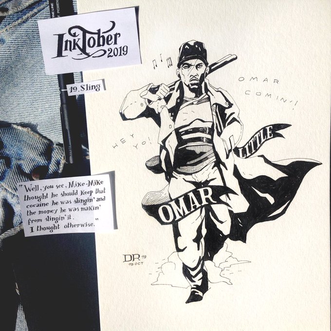 "All in the game yo, all in the game.". Inktober #19 Sling Best Character Ever. #Omar #TheWire #MichaelKWilliams #DavidSimon #inktober2019 #inktober #illustration #drawing #art #series #HBO #ilustracion #OmarLittle #Baltimore Original artwork for sale 👉davidrendo.bigcartel.com