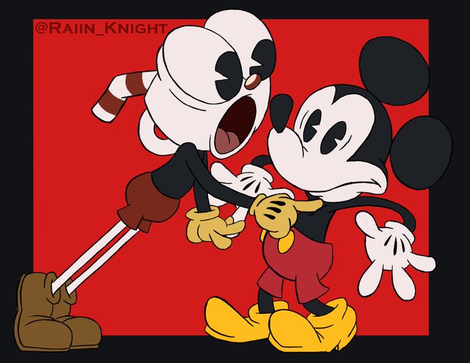 "Wow! I can't belive I'm standing next to Mickey Mouse! You're way shorter in person" #Cuphead #MickeyMouse #cupheadshow #cupheadfanart #Disney
