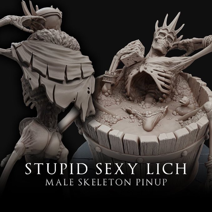 July Preview: Stupid Sexy Lich Pinup? 💀🍆 #dnd #dnd5e #miniatures #dungeonsanddragons #dndart #dndminis #miniature #zbrush #dndartist #darkfantasy #pinup #pinupart #undead #skeleton #dndmonsters #dndmonster #lich #3dprintable #whathaveidone #whathaveibecome