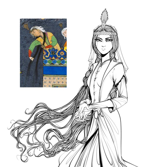 Did a redraw of Roodabeh for a university class. It's not finished yet. I'll share it again of I finish it. #characterdesign #characterart #miniature #drawing