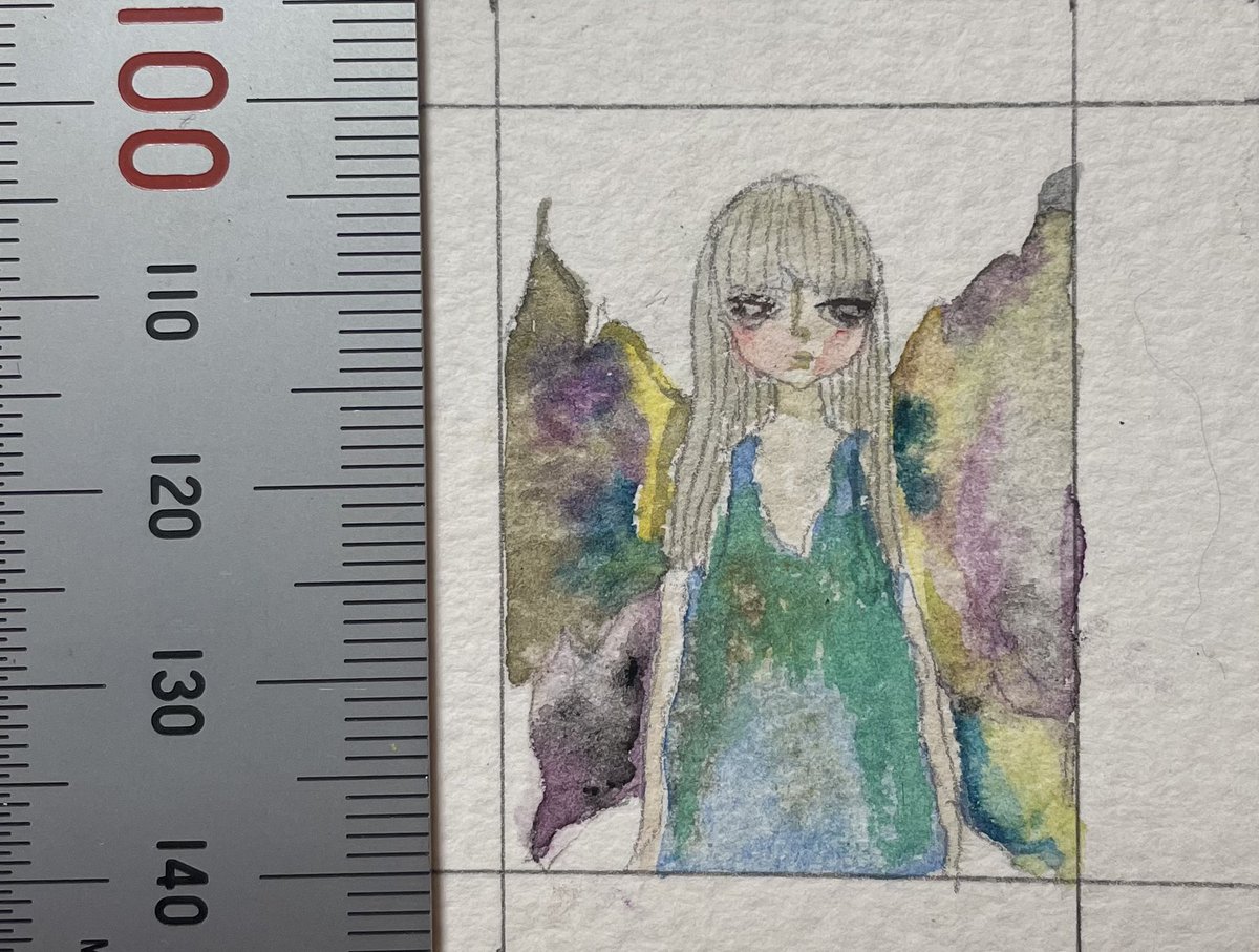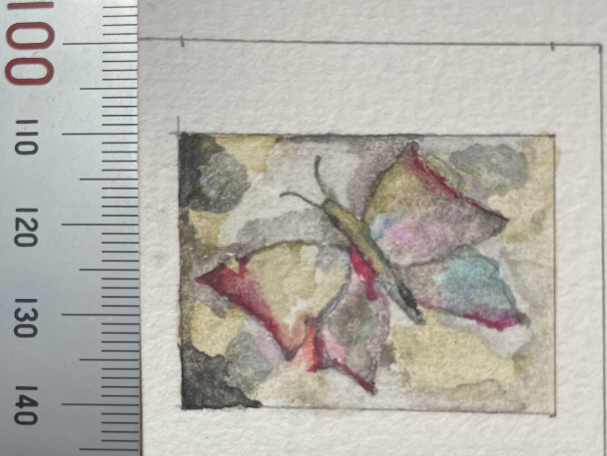 蝶と戯れる Playing with butterfly 2023.Mach.16th #pencildrawing #watercolorpainting #miniaturepainting 3cm×4cm