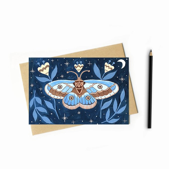 Morning #elevenseshour I sell gorgeous jewellery, original art and high quality cards like this beautiful moth card. 15% off your first order fawashah.co.uk/product-page/m… #gift #shopsmall #art #painting #artistontwitter #MondayMotivation #illustration #gift #moth #birthday #stationary