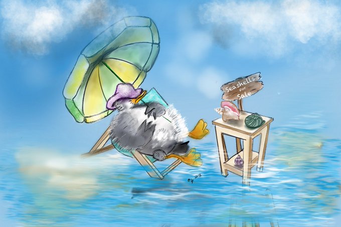 A Seagull Sleeping Selling Seashells by the Seashore for this weeks @AnimalAlphabets . ..Wishing Everyone a wonderful #AnimalAlphabets new week! 💖🕊️✨#situations #kidlit #kidlitart #seagull #seashore #mondaymotivation #seagullart #illustration #artistontwitter
