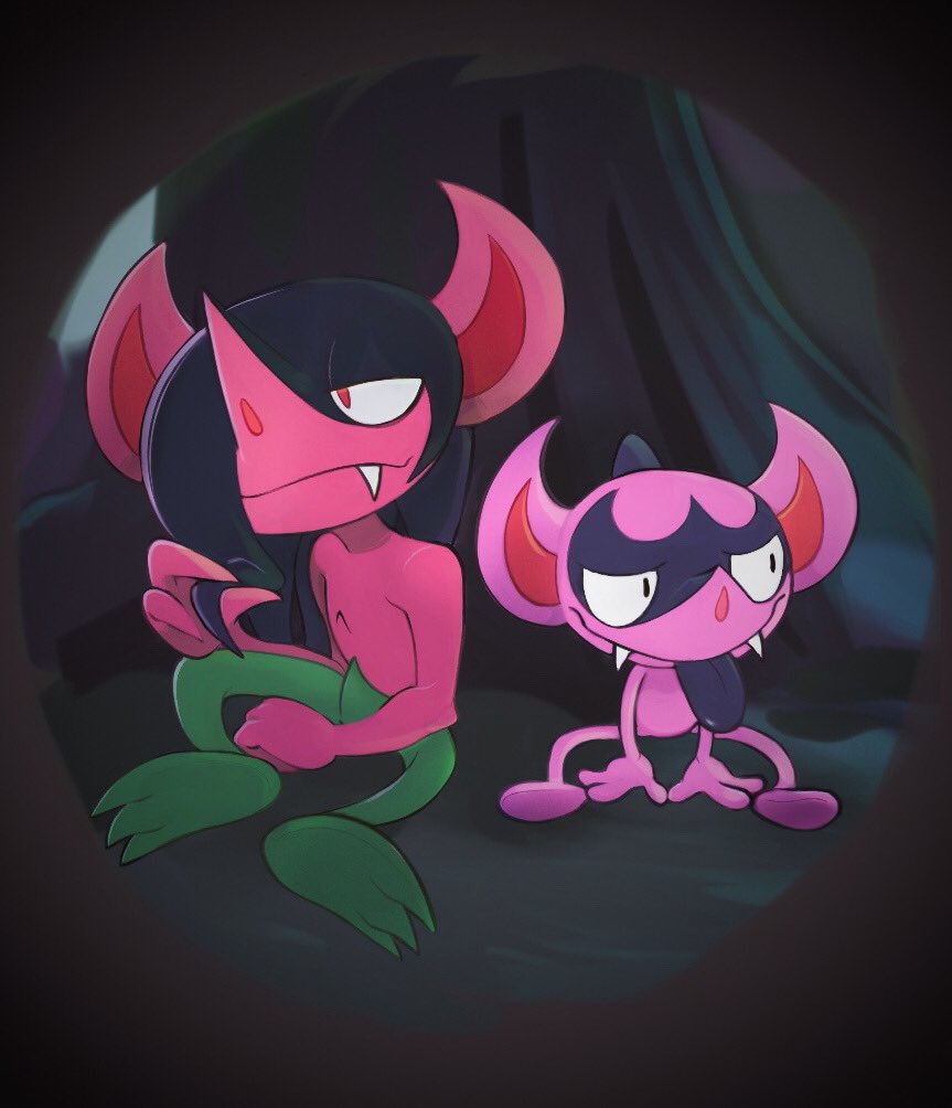 🎃Happy Halloween!🎃 Fudo and Gambit are cosplaying this year. Can you tell who they are dressed as? It's one of their favourite animes (and one of mine too). #pokemon #halloween #morgrem #obstagoon