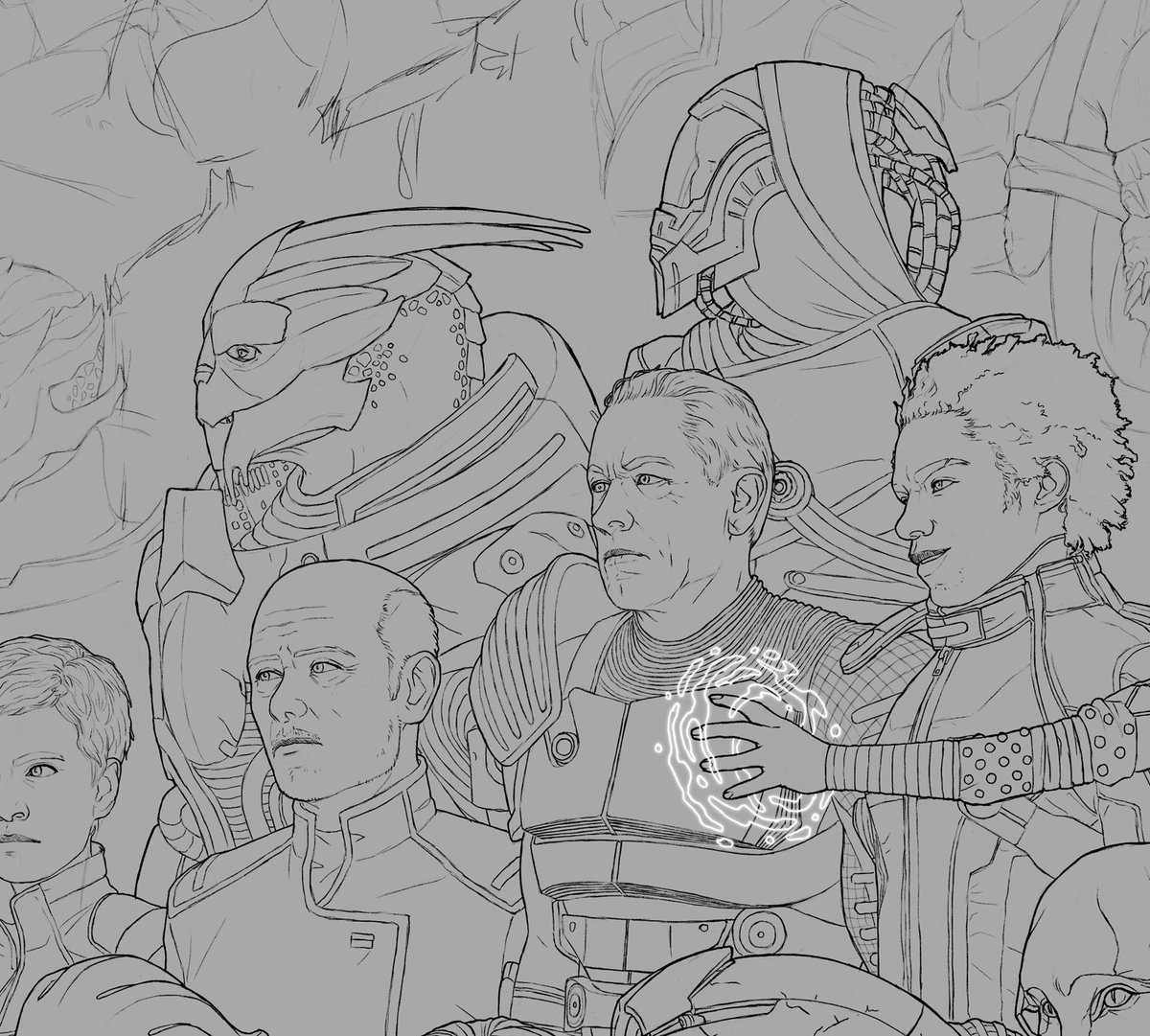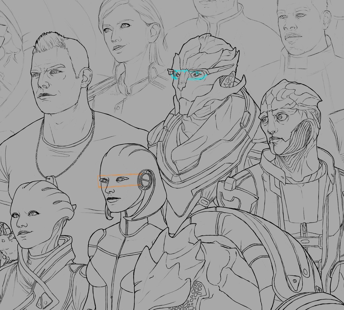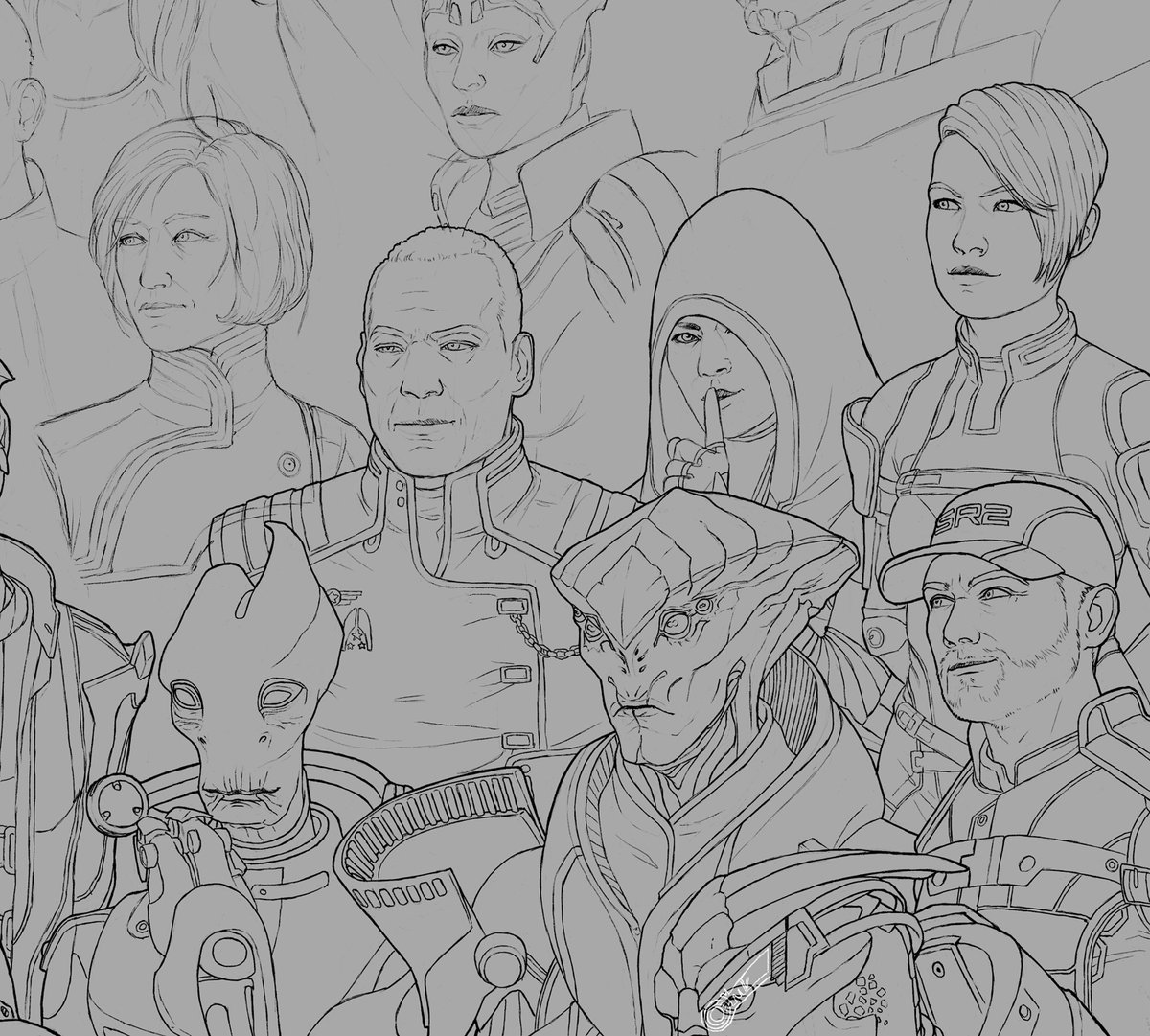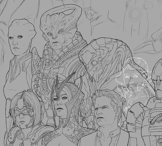 an update on my big #MassEffect piece for #N7Day :D haven't done as much as i'd hoped, but still getting there slowly; getting close to half the characters drawn in