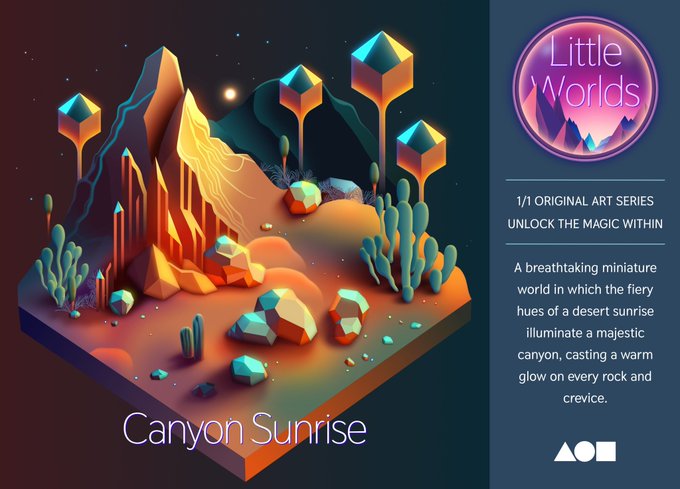 ✨Unlock the Magic Within 🌄“Canyon Sunrise” From the “Little World” series The perfect way to add a touch of magic and wonder to your collection, with each tiny world waiting to be explored and cherished. 0.12 ETH Reserve ⬇️Link #NFT #NFTartists #nftcollector #digitalart
