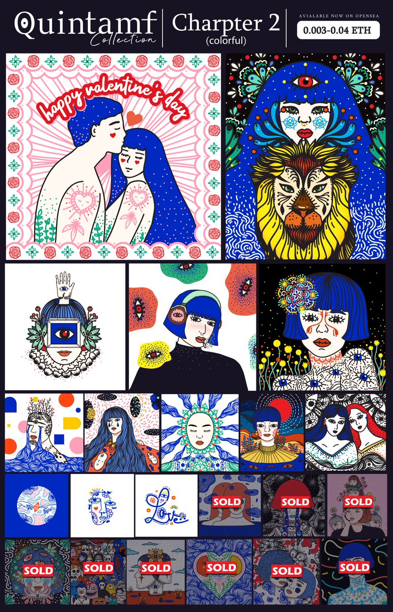 💐❤️Happy valentine's day❤️💐 🥰New drop✨ 💙Quintamf Collection💙 -Only have 2 Chapters!- Chapter 2: 60/23(Colorful) opensea.io/collection/qui… #NFT #NFTartist #nftcollectors #NFTthai #NFTthaiartist #NFTdrop