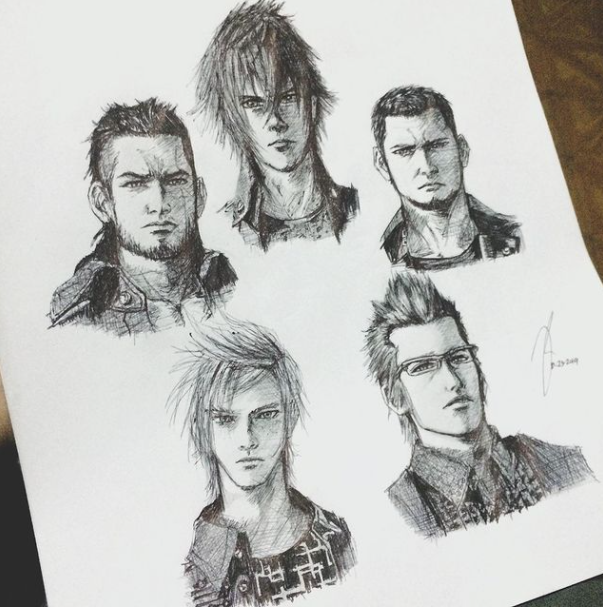 I forgot I was going to draw out the whole ff15 gang. 500 years after drawing Prompto, Noct has been added #FFXV #FF15 #FinalFantasyXV #Prompto #Noctis #art #ArtistOnTwitter #FANART