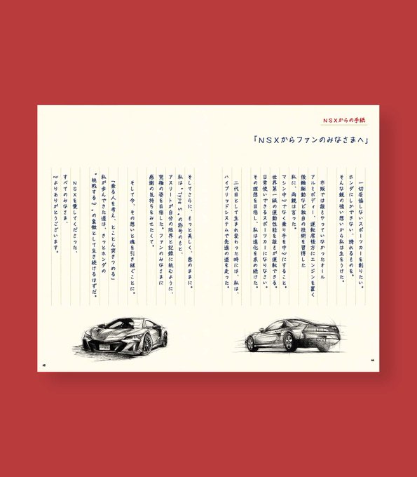 【お仕事】 デジタル版 「Honda Magazine」vol.41 honda.co.jp/magazine/ 「NSXからファンのみなさまへ」で NSX Typr S(新型)と初代NSXを描かせていただきました #hondamagazine #honda #NSX #車イラスト