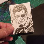 Inktober 2021 day 29, Prompt word PATCH. 2.5 X 3.5 inch sketch card. THAT time David Hasselhoff was Nick Fury. @inktober #inktober2021 #inktober #originalart #nickfury #thehoff #marvelcomics