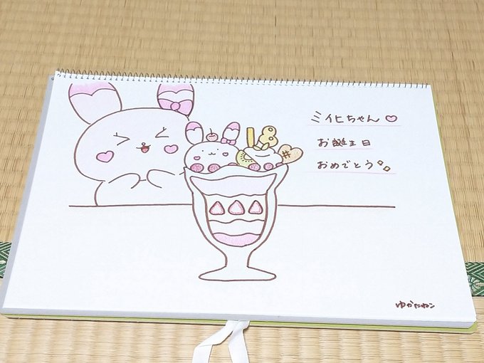 ミイヒちゃん💗 18歳のお誕生日、おめでとう🎂 ピョンピョンパフェで、 お祝いするね!! いつもありがとう😊✨ #HappyMiihiDay #みひたん生誕祭 #ピョンピョンでぃーぬ #NiziU #NIZOO #イラスト