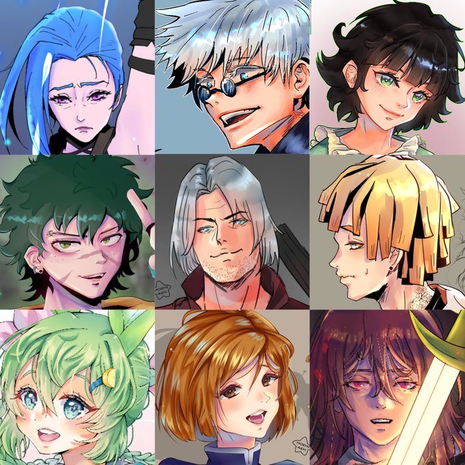 They look like they r made by 9 different artists 😂😂 #faceyourart #FaceYourArt2022 #Jinx #GojoSatoru #Deku #zenitsu #Dante #nobarakugisaki #fanart #anime #AnimeArt