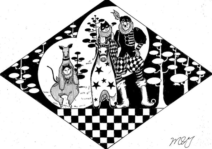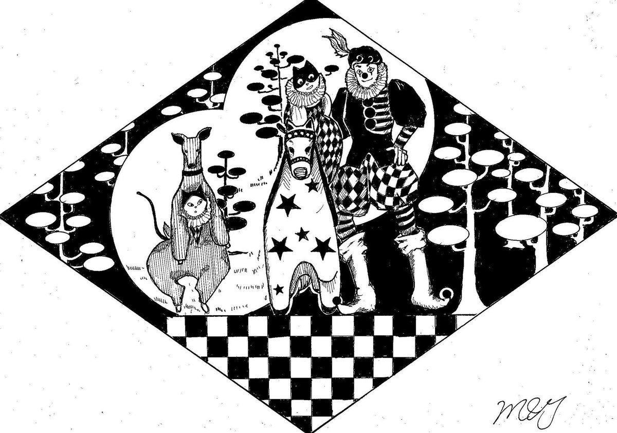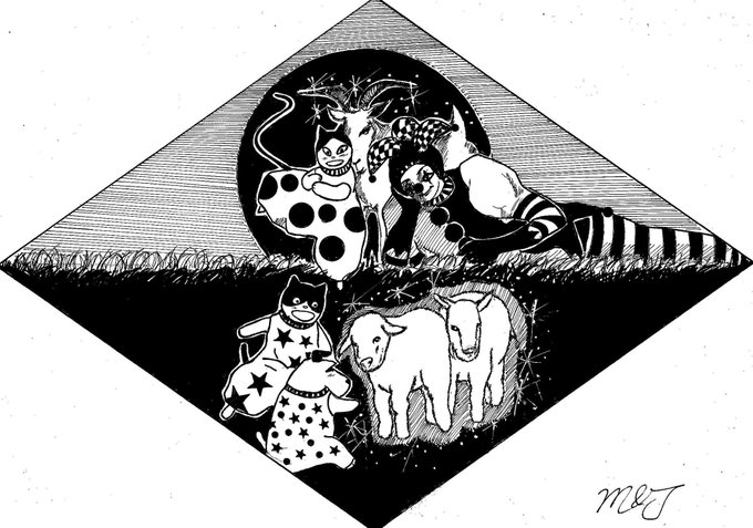 #イラスト #analogart #monochrome #of #ArtLovers #道化師 #犬と猫 #ヤギ #赤ちゃん 😸😺🐶 ヤギの赤ちゃんが生まれたんだ! うわ~~~! 何これ?めちゃくちゃ可愛い!!!💖💖💖