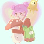 I have been playing @ooblets everyday since it came out on the switch and I am obsessed 😭 i absolutely love the designs n everything is so cute 🥺 here’s a lil art of my character n my favorite ooblets ! #ooblets #illustration